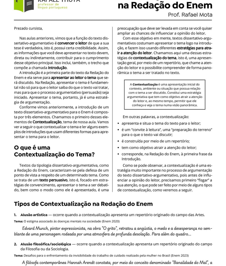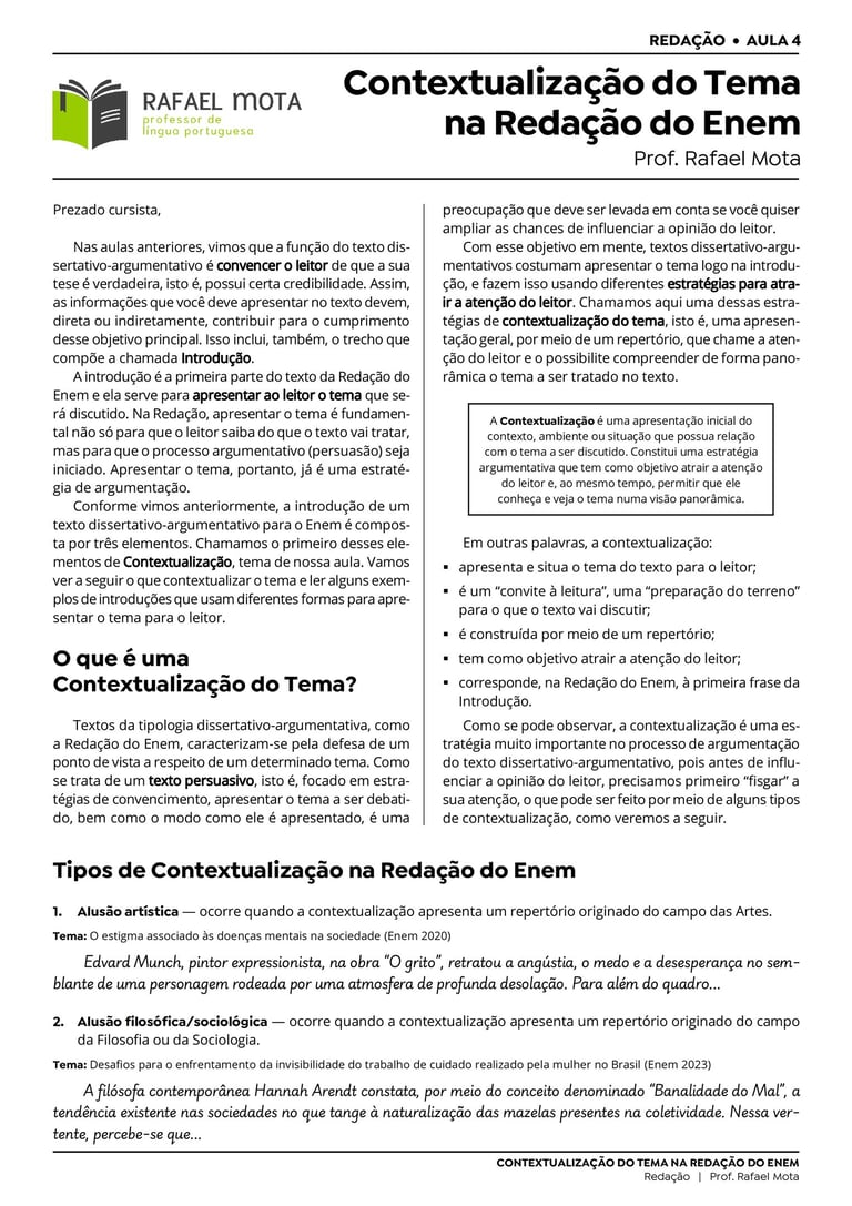 *Por não tratarem especificamente da Redação ENEM, as aulas não disponíveis aqui se encontram na página inicial, na aba "Produção de Textos" ― Aulas.