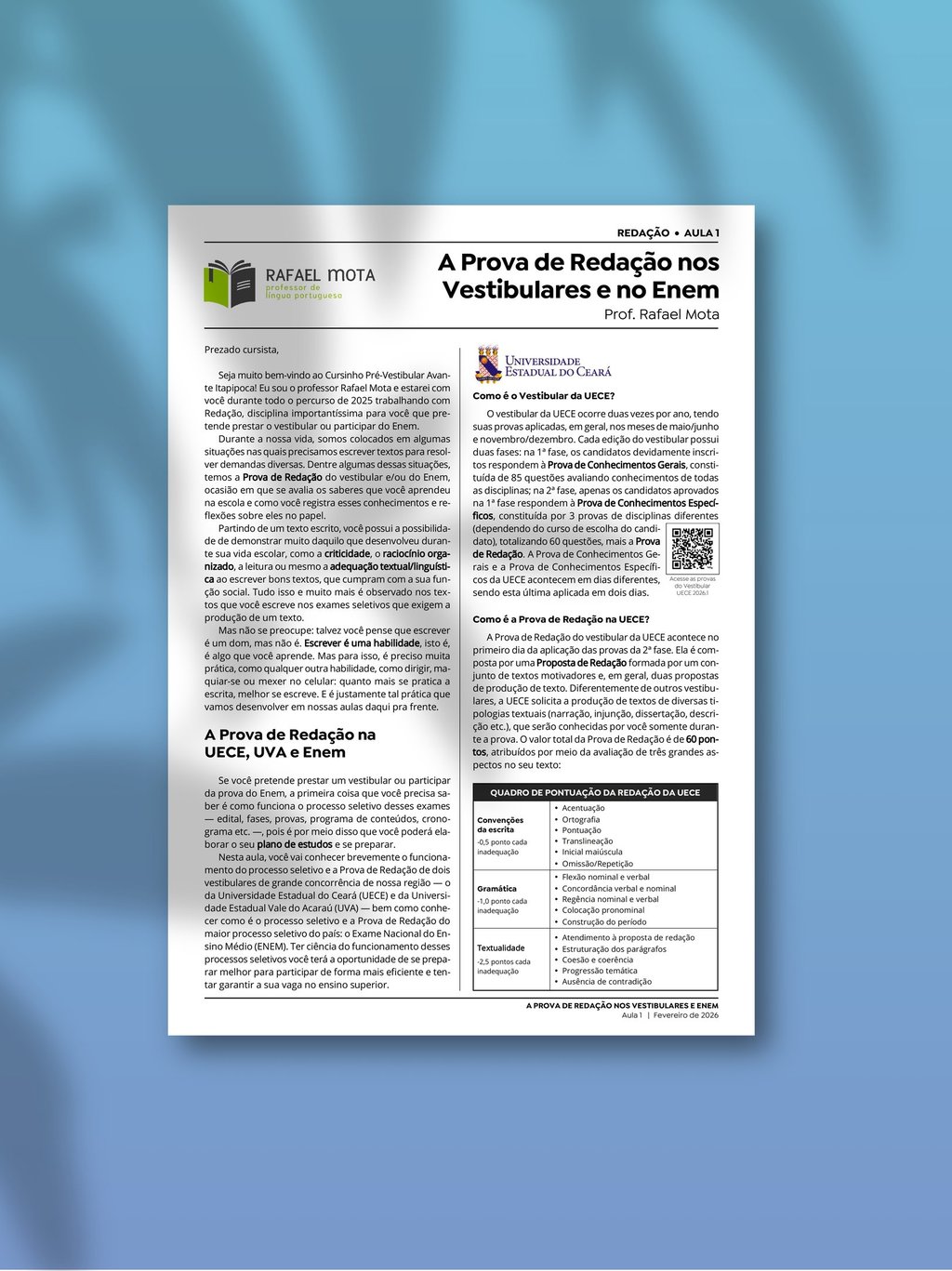 Rafael Mota é cearense e apaixonado pela linguagem. É professor efetivo de Língua Portuguesa do Ensino Médio desde 2009 pela SEDUC/CE. Atua também como professor efetivo de Redação desde 2010 no Cursinho Pré-Vestibular Avante Itapipoca na cidade onde mora. Atualmente trabalha na Coordenadoria Regional de Desenvolvimento da Educação (CREDE 2/SEDUC-CE), onde desenvolve atividades de formação continuada junto a professores do ensino fundamental e médio. É doutorando no Programa de Pós-Graduação em Linguística Aplicada da Universidade Estadual de Campinas (Unicamp). Criou o Porão de Textos inicialmente como um blog em 2009; desde então, vem compartilhando seus materiais para outros professores.