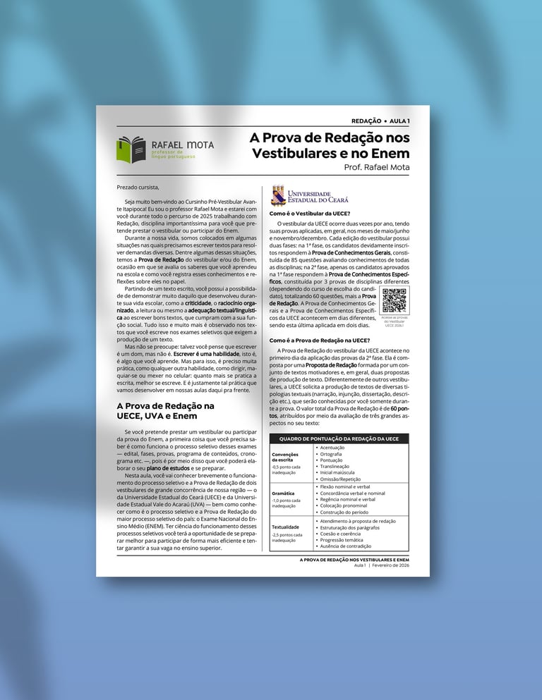 Baixe as provas completas do vestibular da UECE e da UVA para trabalhar com seus alunos do Ensino Médio.